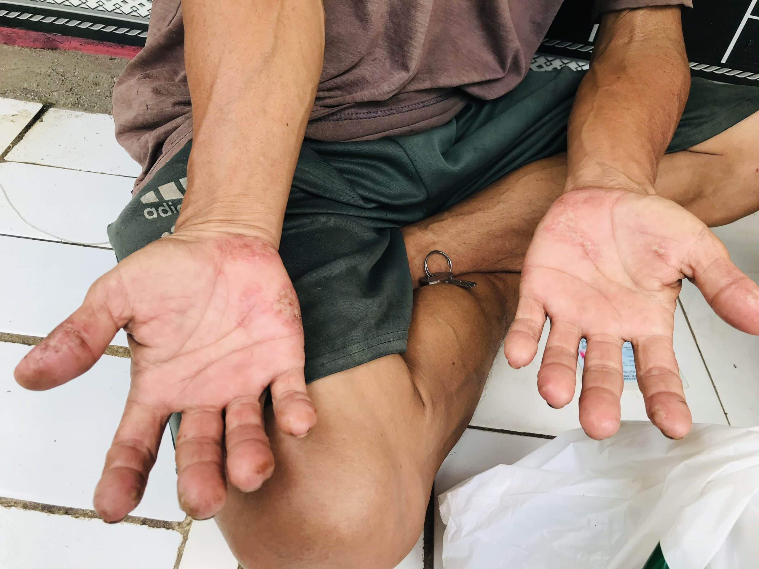 Namun beberapa waktu terakhir, Pak Madsuri harus berhenti bekerja. Kedua tangannya kini dipenuhi luka seperti eksim, terasa perih dan gatal. Terkadang tangannya sulit digerakkan.